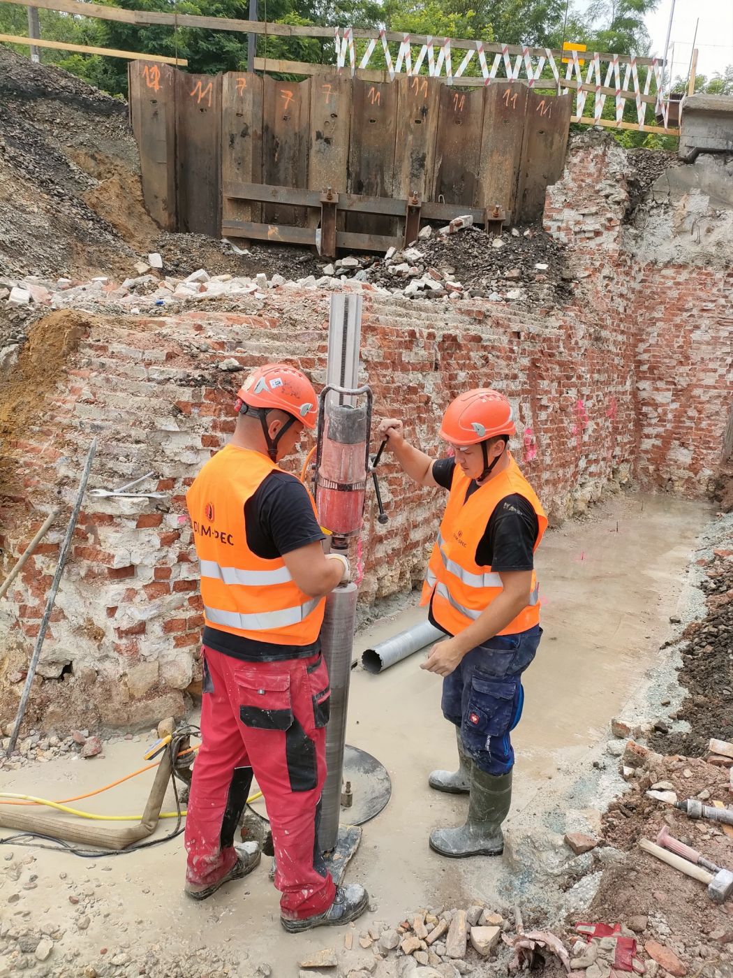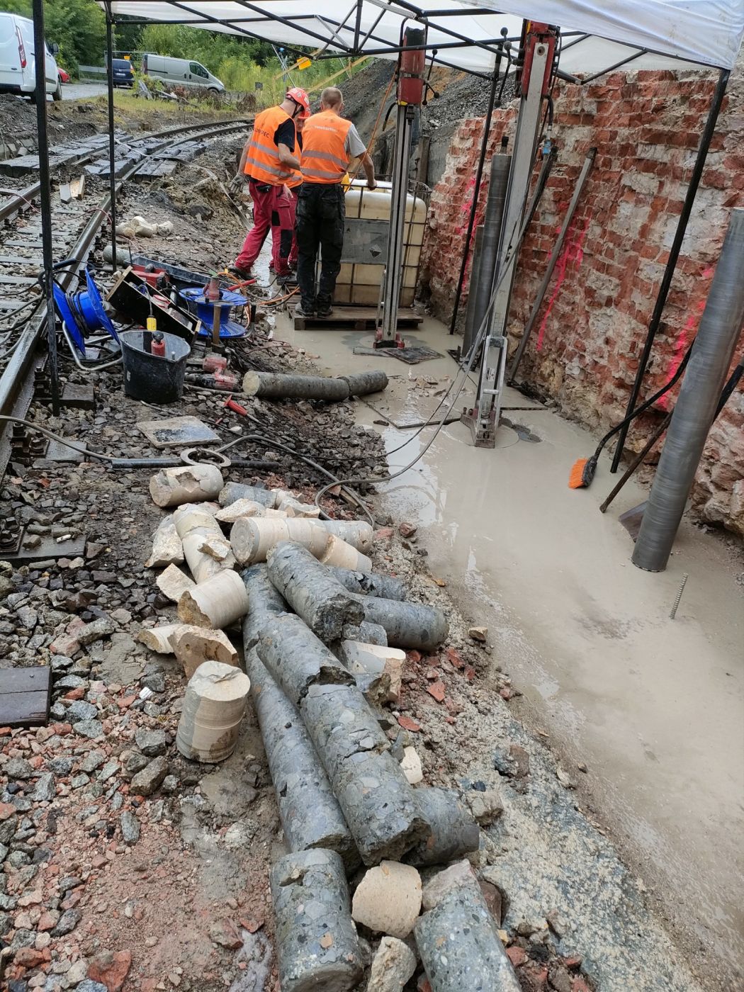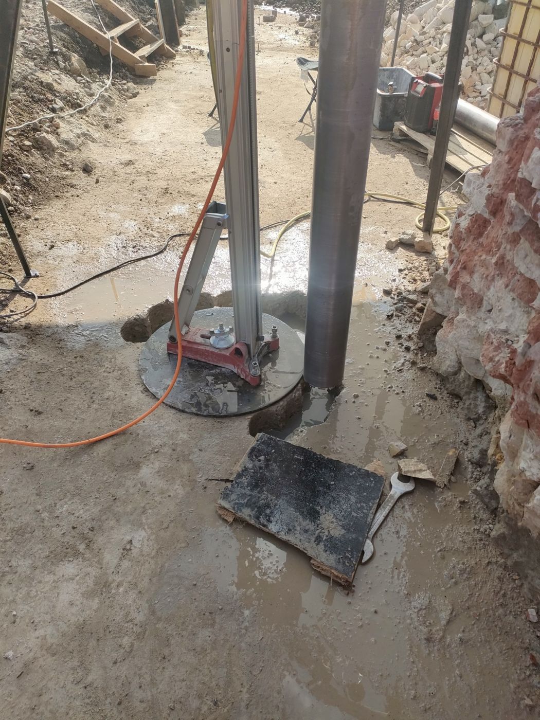 W ramach naszych usług wykonaliśmy precyzyjne wiercenie diamentowe pod pale fundamentowe, zapewniając najwyższą jakość i dokładność odwiertów. Technika diamentowa pozwoliła na skuteczne przeprowadzenie prac w twardych materiałach, takich jak beton, żelbet i skały, bez ryzyka uszkodzenia struktury otaczającej.